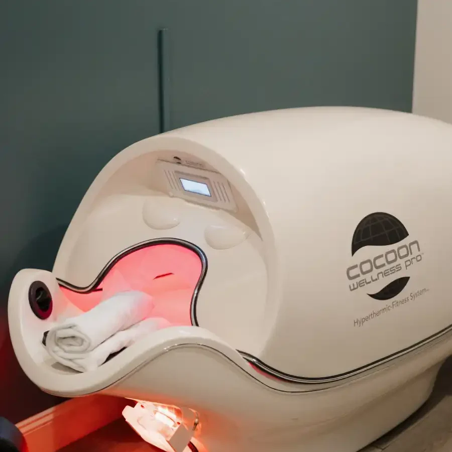The Cocoon is safe for most clients, but not recommended for those with uncontrolled high blood pressure, heat sensitivity, or during pregnancy. Always consult with your doctor if unsure.
